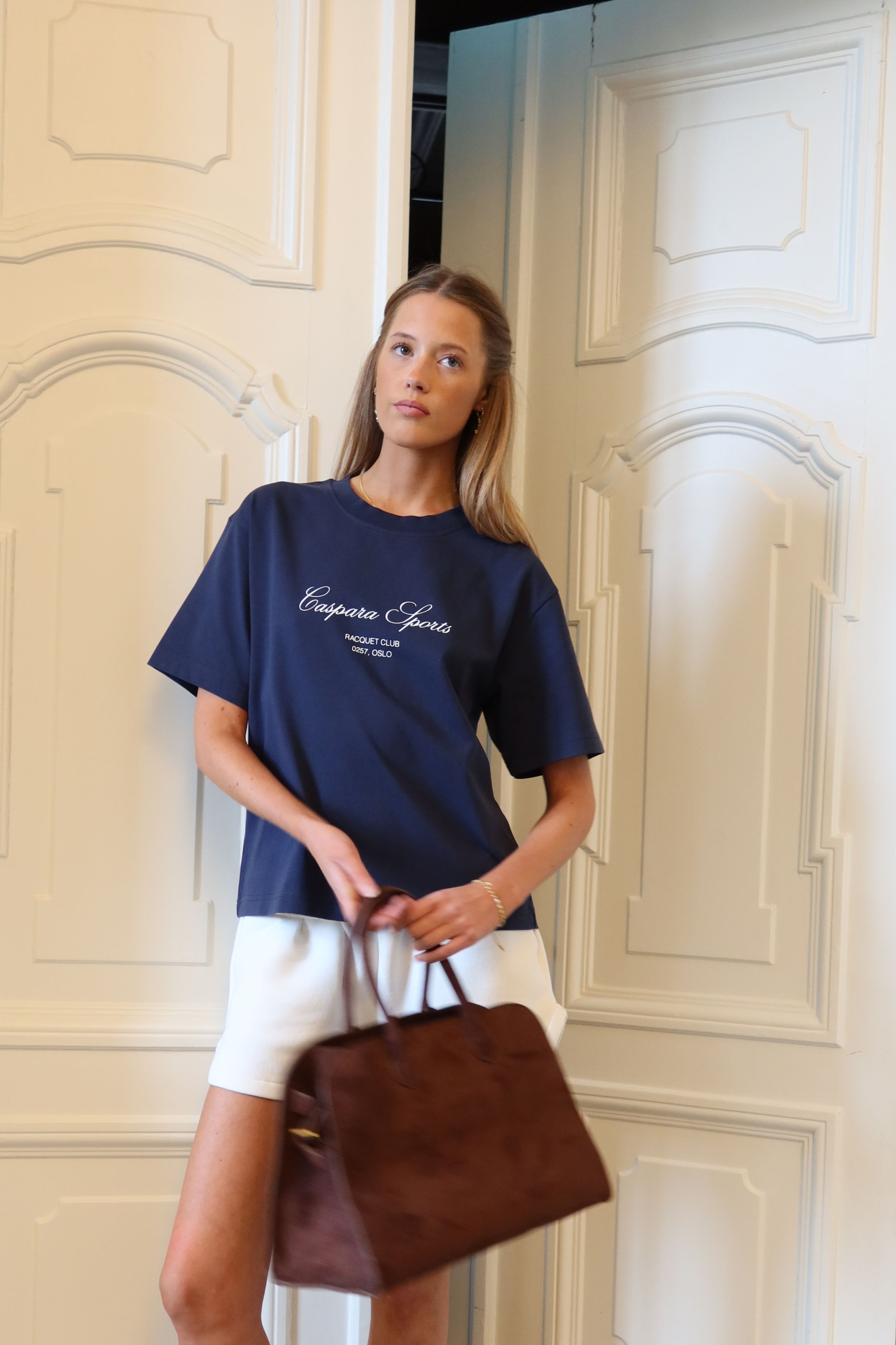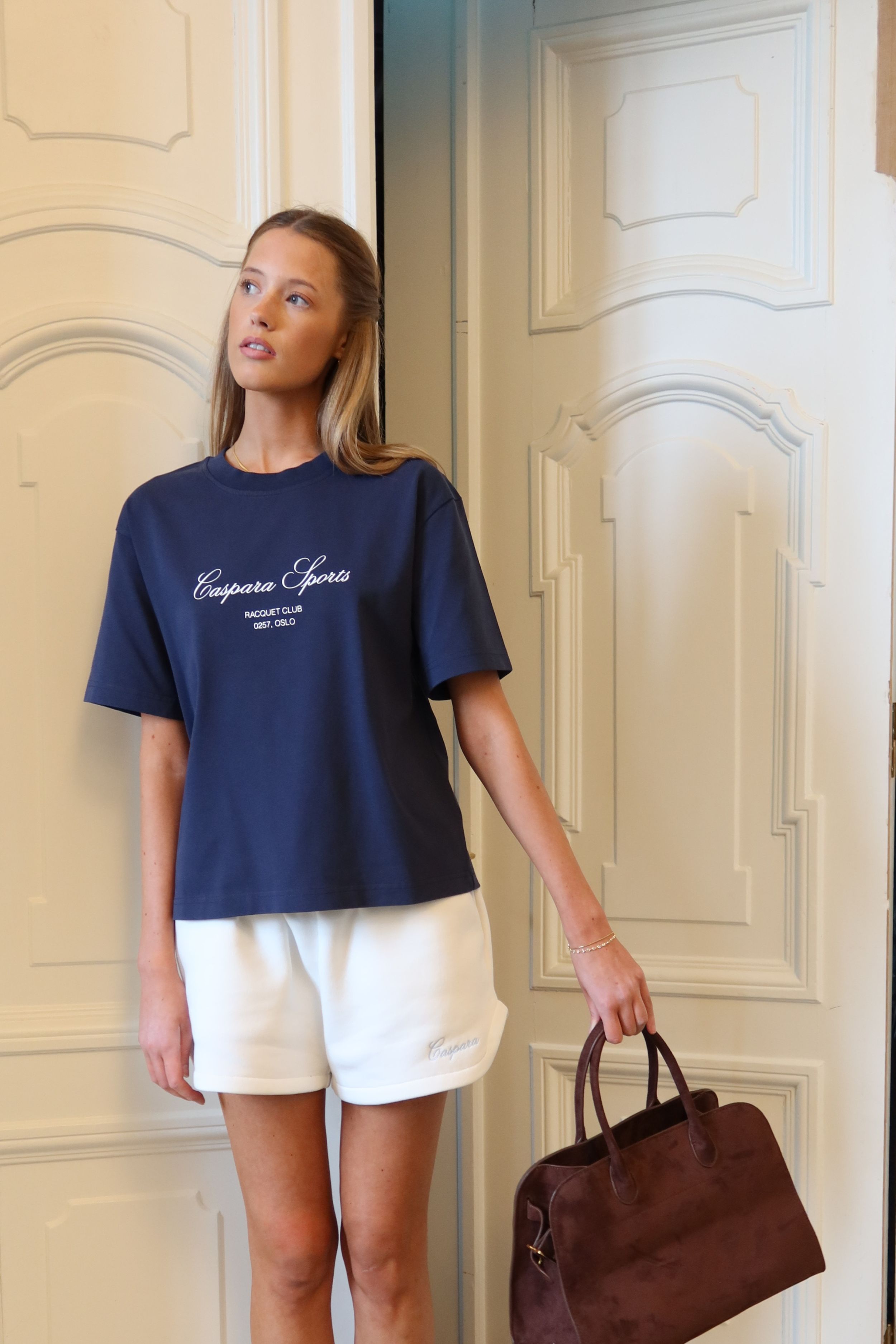 Color: Deep navy with a whisper white Racquet Club script print.